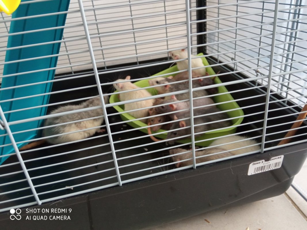 Dans ma méthode j'aime bien tenter le terrain non neutre avant le passage en cage commune. Et j'aime bien aussi les installer en cage commune de transition, plus petite que la cage définitive ; je les laisse comme ça une semaine ou deux (parfois dans une cage prévue pour 2-3 rats max alors qu'elles sont 4 ou 5). Avec des sorties quotidiennes ça ne pose pas de problème (car c'est sur une courte période), et ça permet de bien tester les susceptibilités et de renforcer les liens par la force des choses.