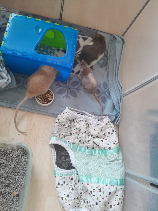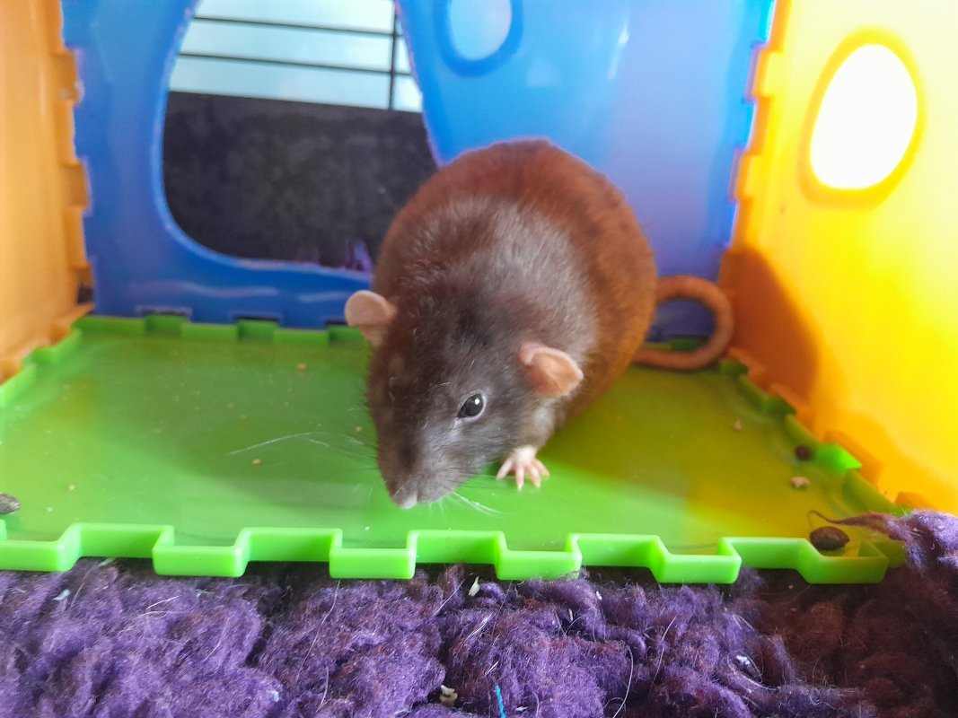 Je lui ai acheté une roue, les autres rates la regardent donc en faire pendant des heures tout en restant perplexe devant ce passe temps ahah.