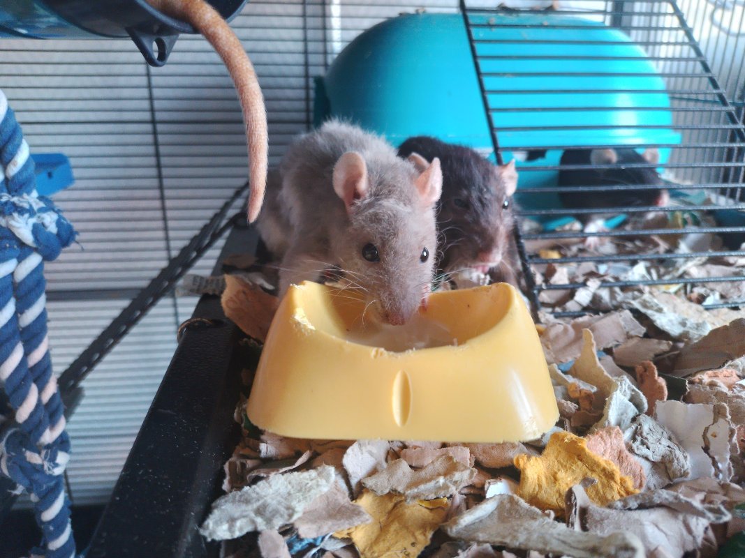 Comportement avec les autres rats : pas de soucis particulier. Elle ne se dispute avec aucune.