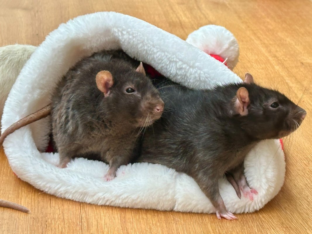 J'ai adopté HKM-NAM Gremlins et ses frères tardivement et ça a été un grand bonheur. Gremlins aura été un rat exceptionnel et marquant : d'une extrême gentillesse, immense, sublime. Il a eu 2 portées et a vécu vieux sans soucis de santé. Je n'ai pas adopté sur ses portées alors je me rattrape sur ses petits-enfants à présents