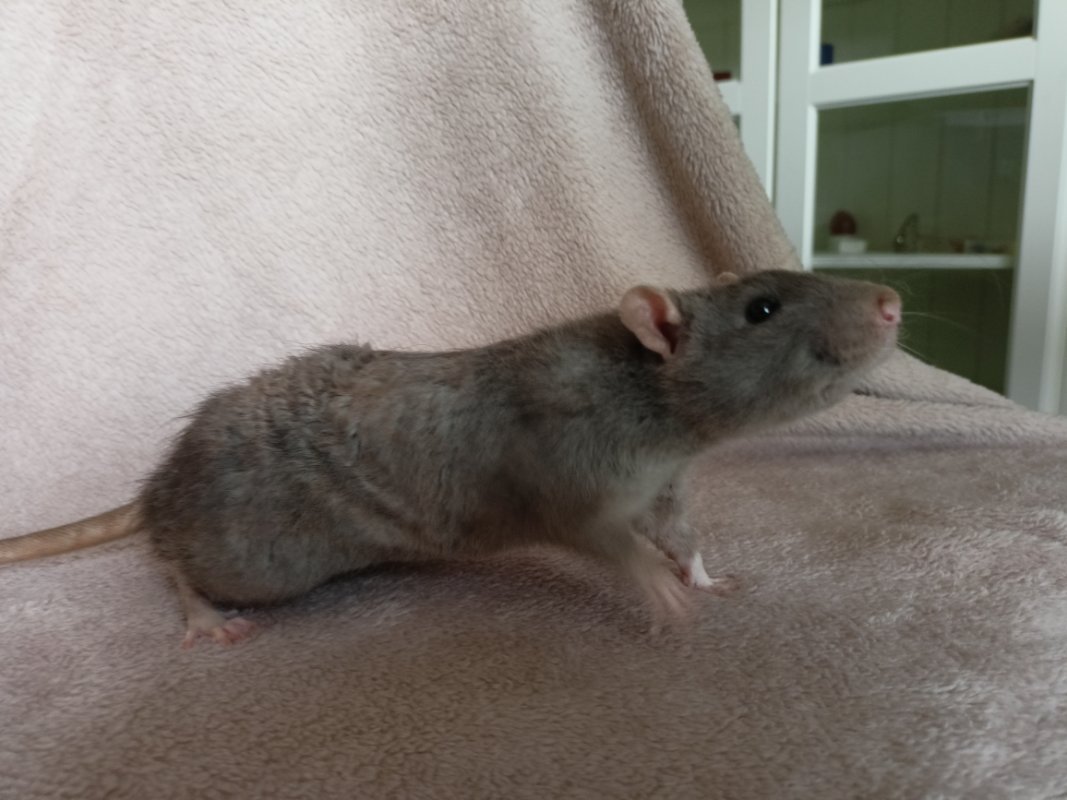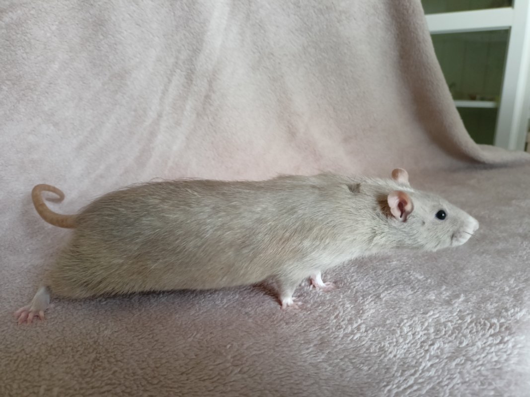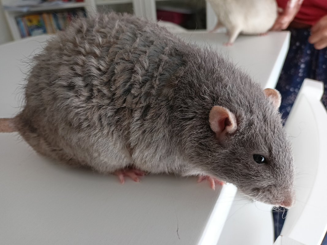ARK-IND Klaus, né le 12 Mars à la maison en collaboration avec une adoptante. Birman marbré base bleu russe berkshire standard lisse. Très neutre avec l'humain, super indépendant, plutôt calme et aimait faire sa petite vie dans son coin. Totalement stable et cool avec les autres rats, adorait servir de tonton aux ratons. A déjà eu une portée de 8 ratons chez Ambrozy (De Nectar et d'Ambrozy - DNA). Sa généalogie sur le LORD. Sa fiche sur mon site. Klaus est décédé de vieillesse le 09 Juin 2023 (âgé de 26 mois, quasiment 27).