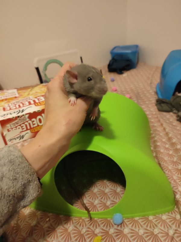 Caractère général: que dire sur Balivernes, tellement elle est extra cette ratoune. Déjà très à l'aise dès son arrivée, à jouer avec les doigts et à ne pas vouloir les lâcher pour mieux les renifler. Se laisse tripatouiller sans pouiquer. Mais les sorties et fureter partout, c'est trop bien aussi. Ce qui est bien aussi, c'est qu'elle vient quand on l'appelle.