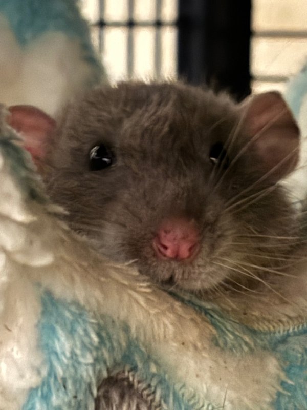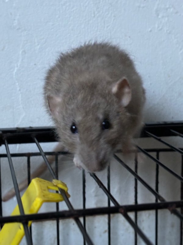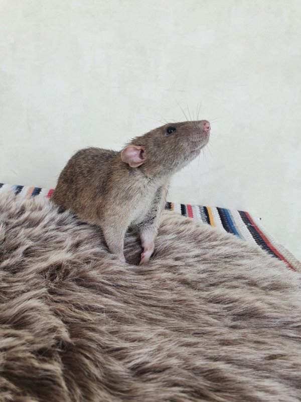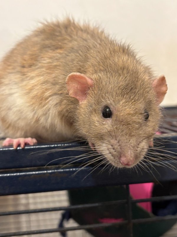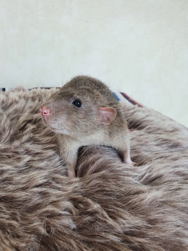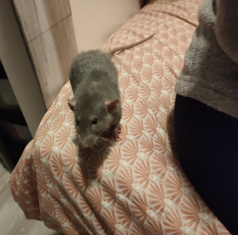 Caractère général/avec l'humain : Lenny est un amour de rat!! Sa passion c'est de lécher et faire le coiffeur dans mes cheveux!!!