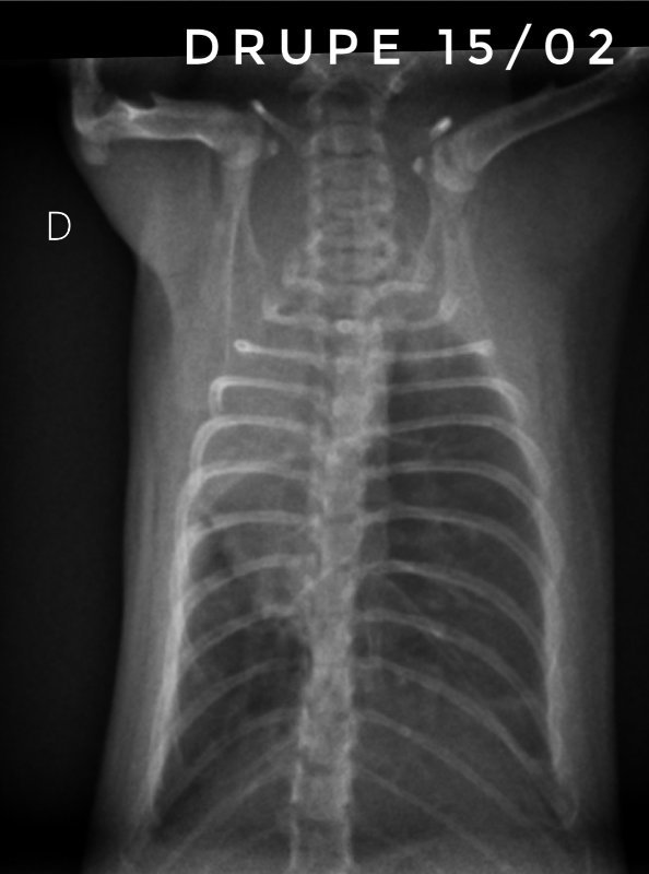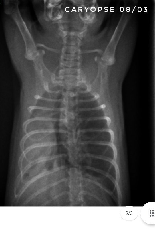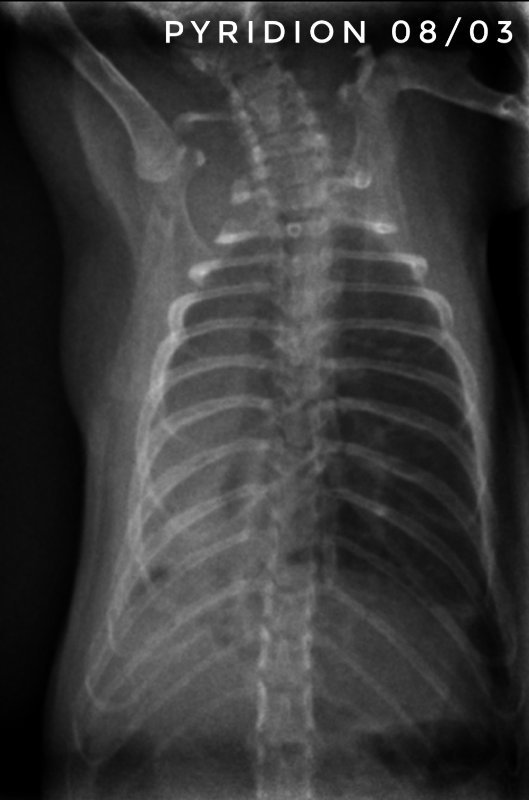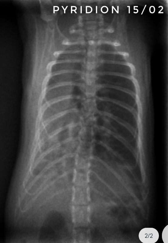 Bon, du coup, les radios montrent que ça a empiré aussi chez Caryopse... On va donc tester le chloramphenicol, par un énorme coup de chance je peux traiter Caryopse avec (c'est un médicament interdit en France)... C'est un peu le traitement de la dernière chance. Pour lui, pas d'intérêt de faire d'autres analyses sur Pyridion (en dehors de dilapider mon argent) on sait déjà ce qu'ils ont, il faut juste réussir à trouver un traitement qui agisse...