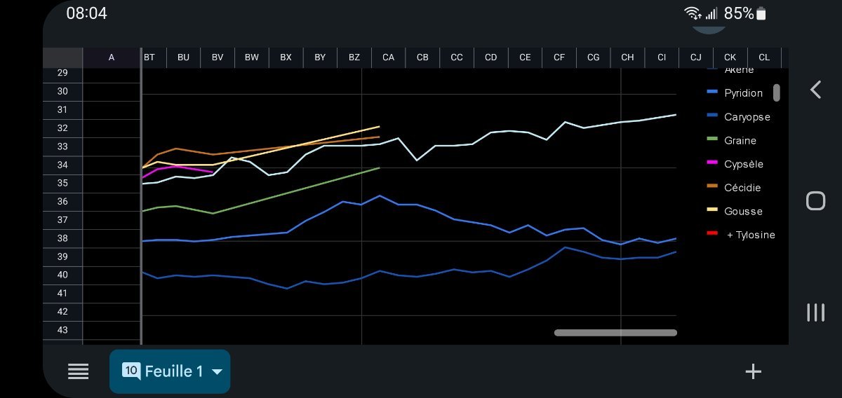 Les 3 autres sont mieux (pas bcp mieux pour Pyridion, chez Caryopse c'est lent, sûrement les lésions pulmonaires qui mettent du temps à se réparer, chez Drupe, un vrai mieux)  mais poumons toujours atteints, donc on les isole des autres et on continue.