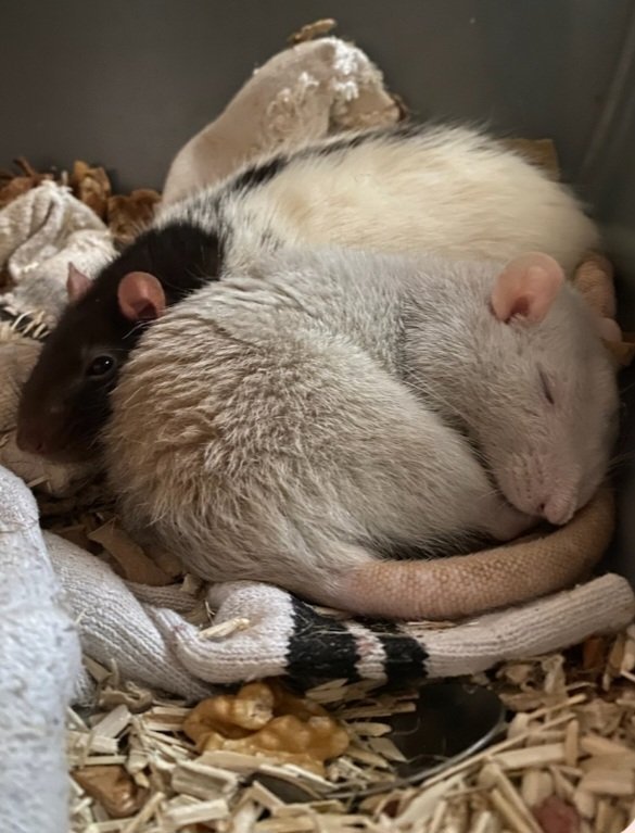 J'ai du temps aujourd'hui...alors je profite de pouvoir vous envoyer des photos de nos ratounes qui comptent beaucoup pour nous. Ce sont nos premières 🙏 et elles ont fait de nous 4 des RATOUPHILES à " donf "...❤️🐀❤️🐁❤️🐀❤️🐁