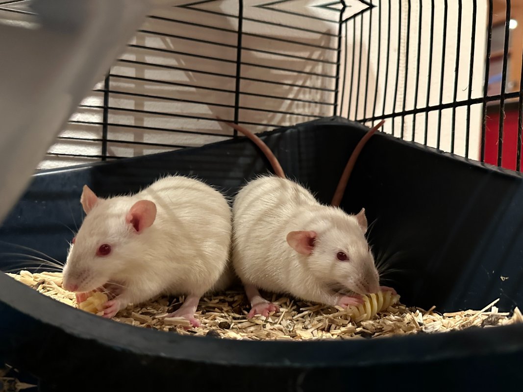 J'ai récupéré mes deux ratons il y a deux semaines! Igor a été renommé Ratatouille (mon aînée a décrété que ce n'était pas normal que nous n'ayons jamais eu de Ratatouille) et Mimi Siku a été renommé Ralcaraz (mon deuxième était en tournée de tennis, les deux plus jeunes se sont alignés). Ils sont adorables tous les deux, très curieux, recherchent les humains et les copains rats. L'intégration était royale, genre on est tous copains on s'est toujours connus.