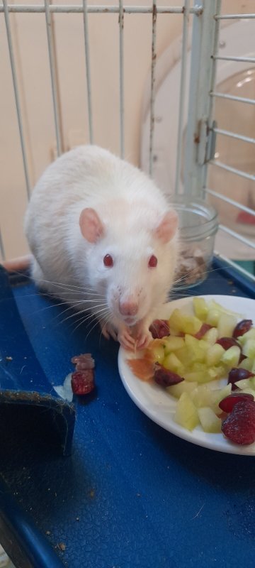 Leurs repas sont composés de granulés Supreme Selective Science Rats et d'aliments frais (graines, riz, concombre, fromage, surimi, pommes...). Ils apprécient énormément les aliments frais que leur propose leur FA.