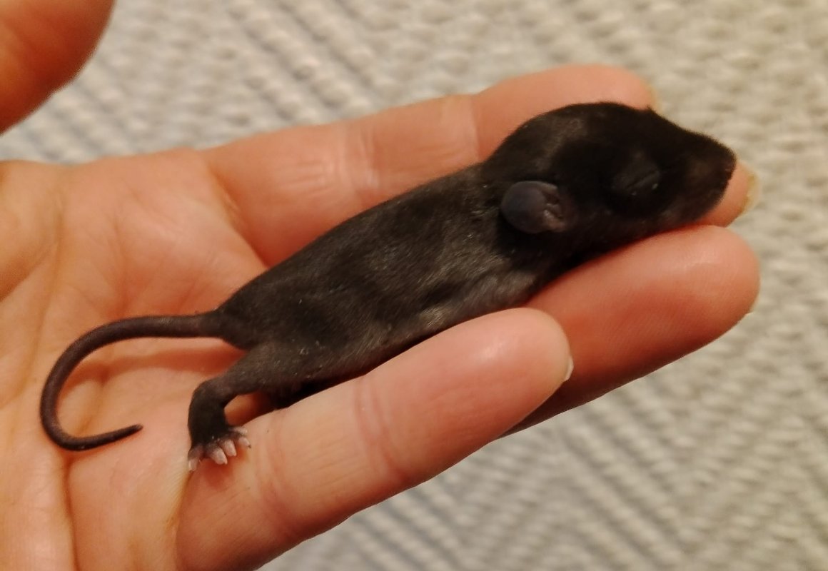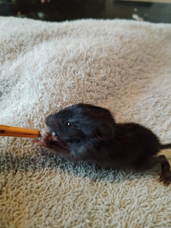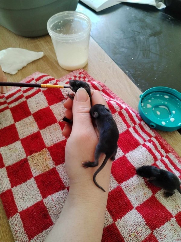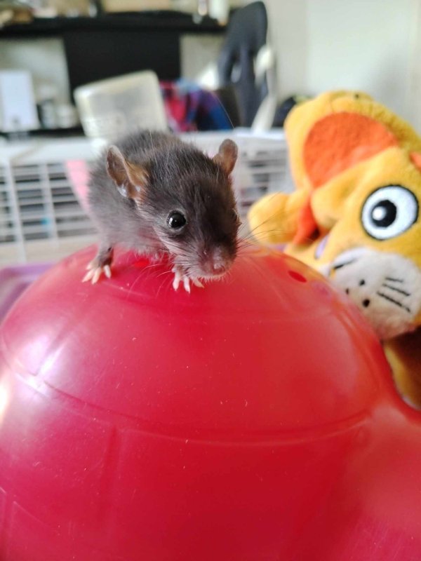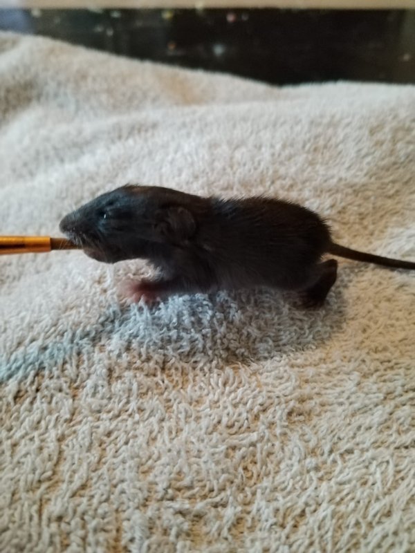 Aujourd'hui Gaia a 2 mois.. et je lui est donné un prénom il y a seulement deux semaines, j'avais tellement peur de la perdre que je ne voulais pas la nommé. Mais je pense qu'elle est sortie d'affaire.. Maintenant l'objectif est de la faire cohabité avec des rats domestique...
