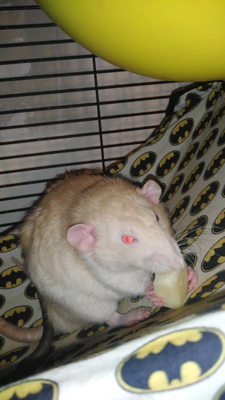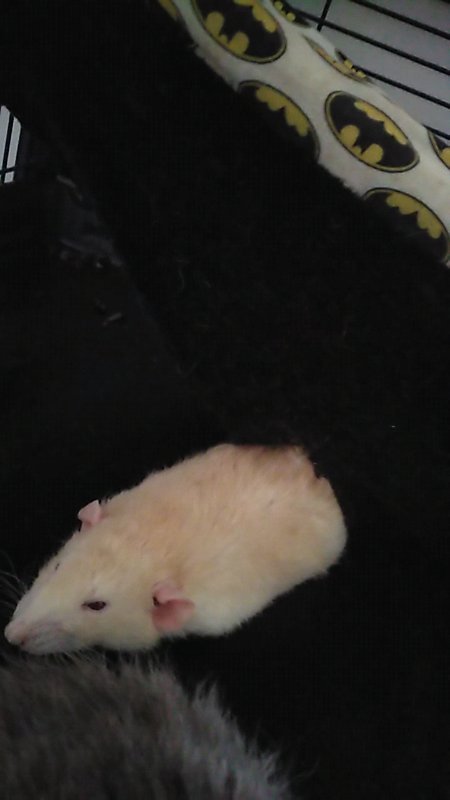 Le bleu us étant très variable d'un rat à l'autre (j'ai déjà eu de grosses différences entre des frères/soeurs), je me dis que ça peut aussi être le cas pour les lavande mock. Je ne vois pas trop ce qu'il pourrait être d'autre. C'est aussi l'effet de la photo, ce n'est pas facile de prendre la réalité exacte et selon la lumière et la mue, il fait plus clair. Sa sœur fait presque blanche en ce moment.