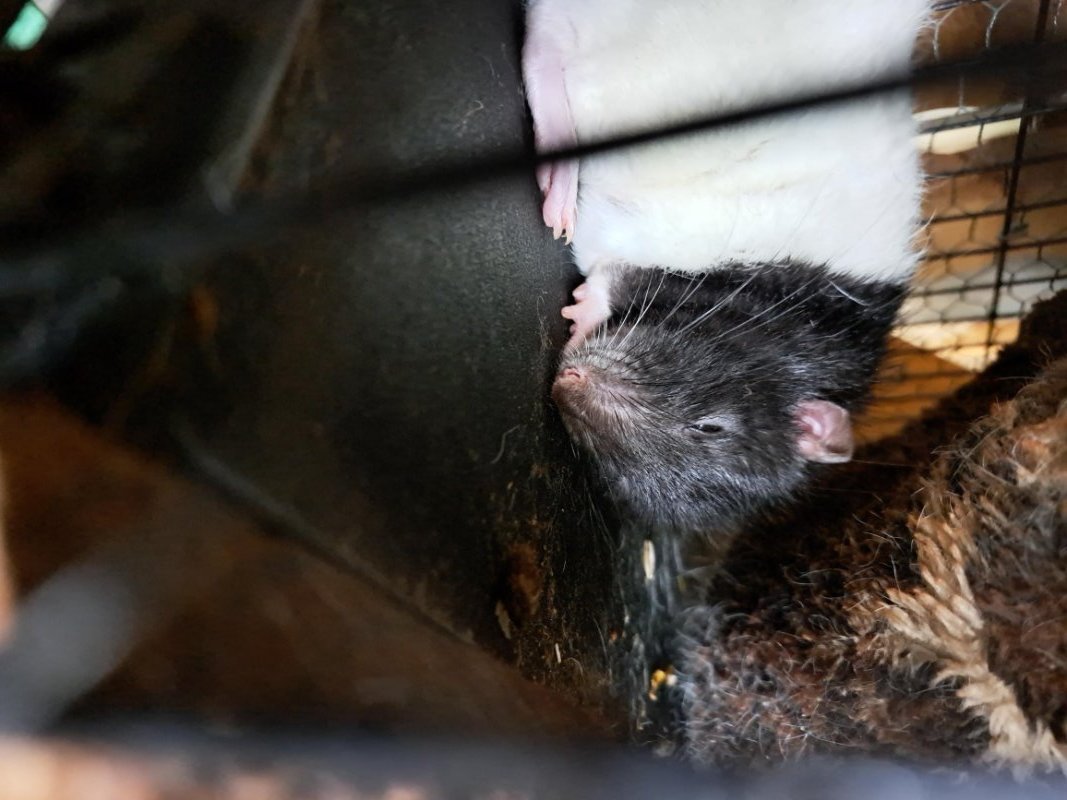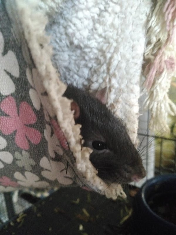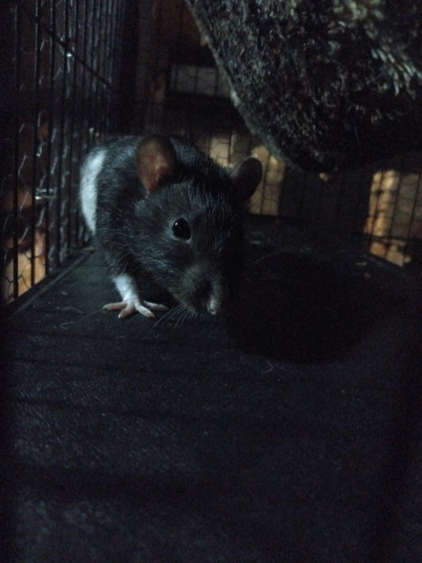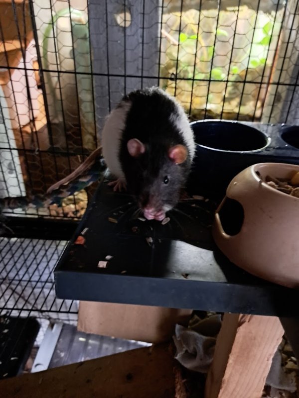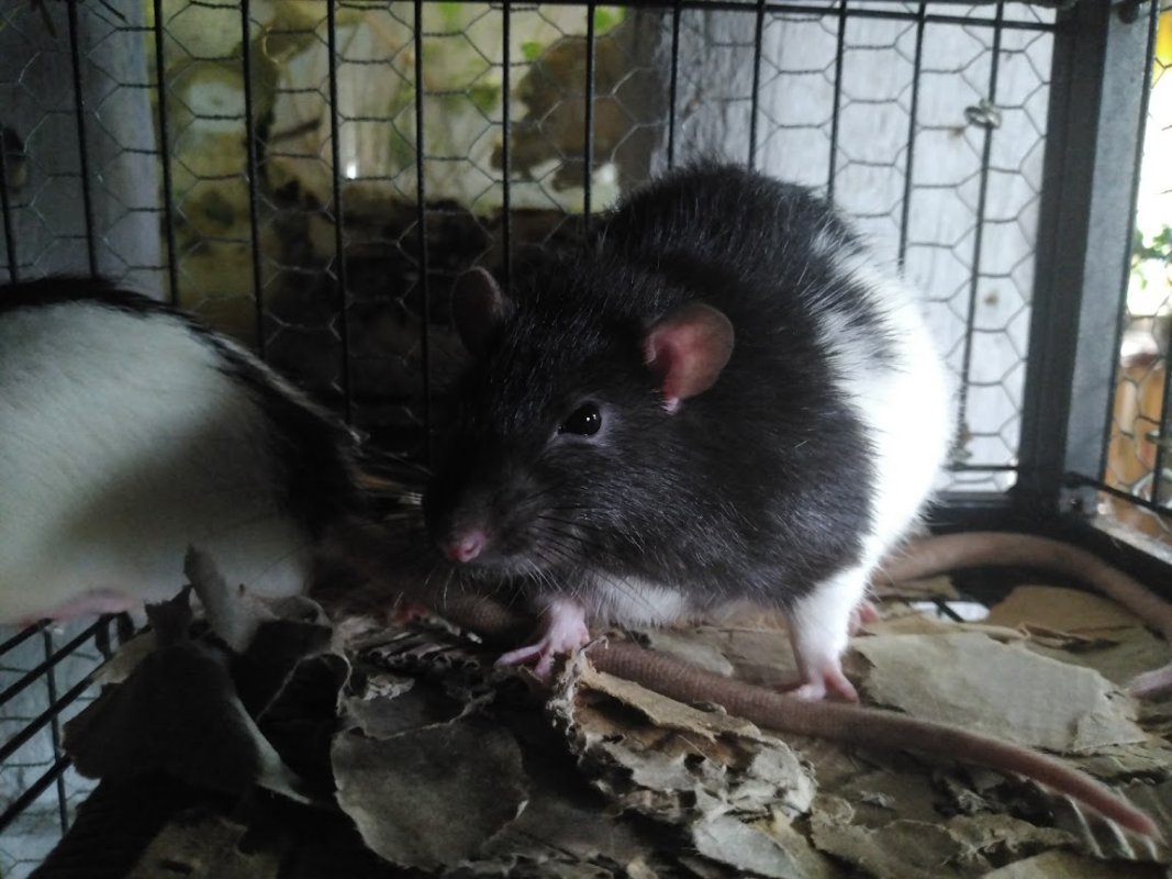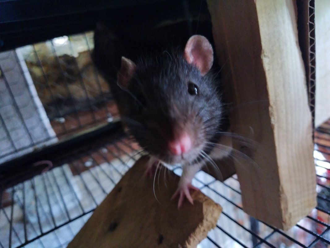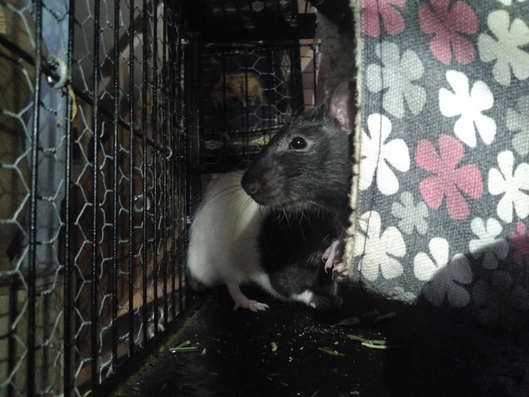 Les 4 autres rats vont bien. Ils ont peur de sortir en dehors de leur cage, lorsque leur FA leur en donne la possibilité. Seul Crunch est intéressé ; c'est le plus curieux et explorateur du groupe.