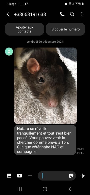 Petit update de la santé de ma rate.