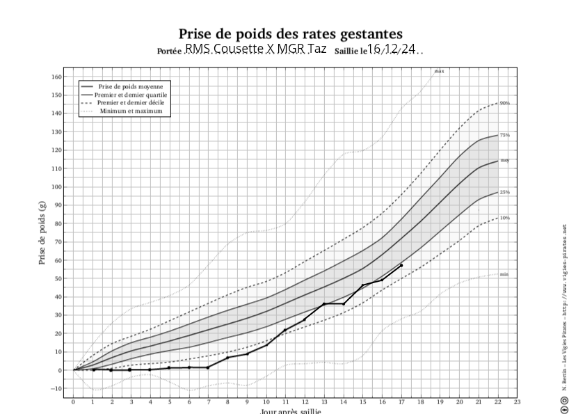 36 grammes en 3 jours c'est effectivement énorme, gestation ou pas ! Même sur de gros mâles malades j'ai rarement vu des pertes de cet ordre (et quand ça arrive on sait bien pourquoi : maladie identifiée, rat qui ne mange plus rien...). C'est 10% de son poids, c'est comme si toi tu perdais 6 ou 7 kilos. J'aurais tendance à penser qu'il y a une erreur de pesée.