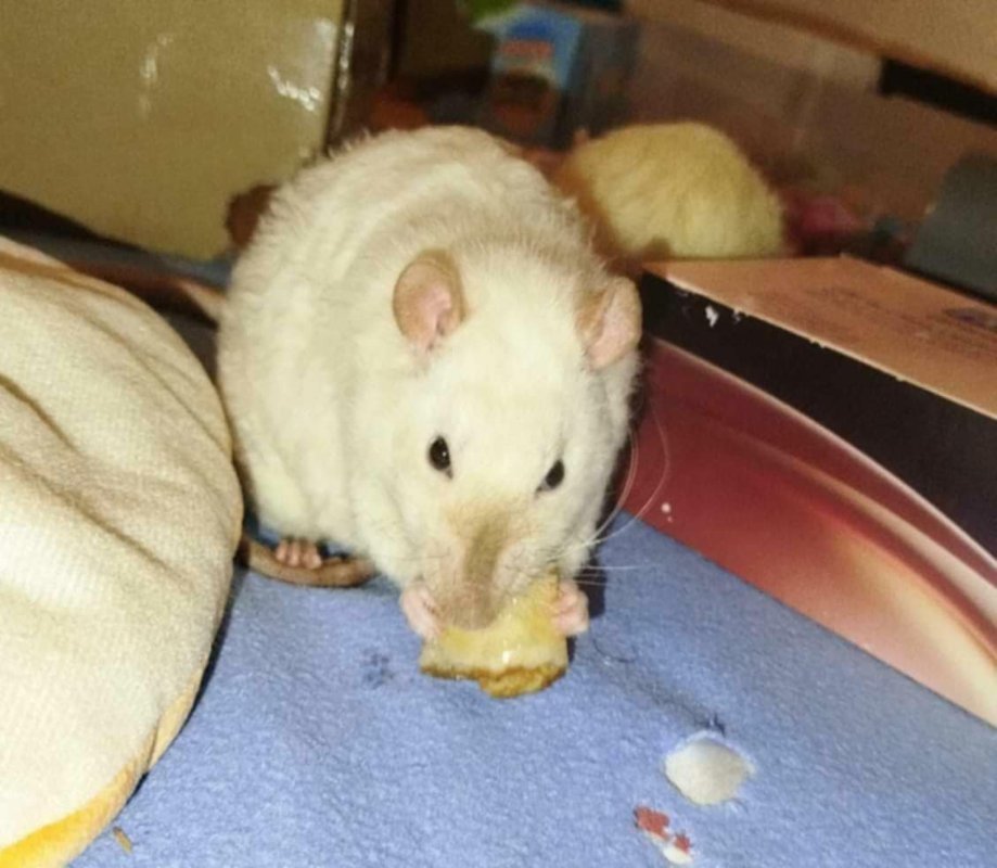 Provenance et généalogie : Née chez AmandineR de la raterie Millo & cie (MIL) qui a géré la mise bas de ma rate le temps que je trouve un covoiturage