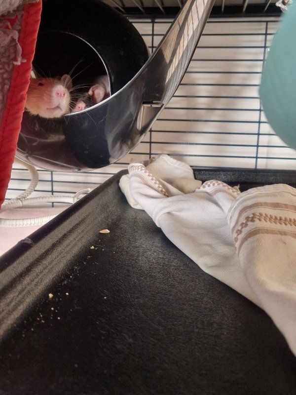 En mai 2025, j'ai rencontré une amie, qui a aussi des rats et depuis plus longtemps que moi. Lorsqu'elle est venue à la maison, elle m'a expliqué plein de choses, montré des façons d'interagir que je n'imaginais pas. Elle m'a conseillé, proposé des alternatives. C'était génial et ça m'a vraiment ouvert le regard. Depuis, je trouve que ma relation avec mes rates a changé. Je suis plus attaché à elles, je les sens plus curieuses et dans une certaine volonté de m'approcher sans rester toujours entre elles.