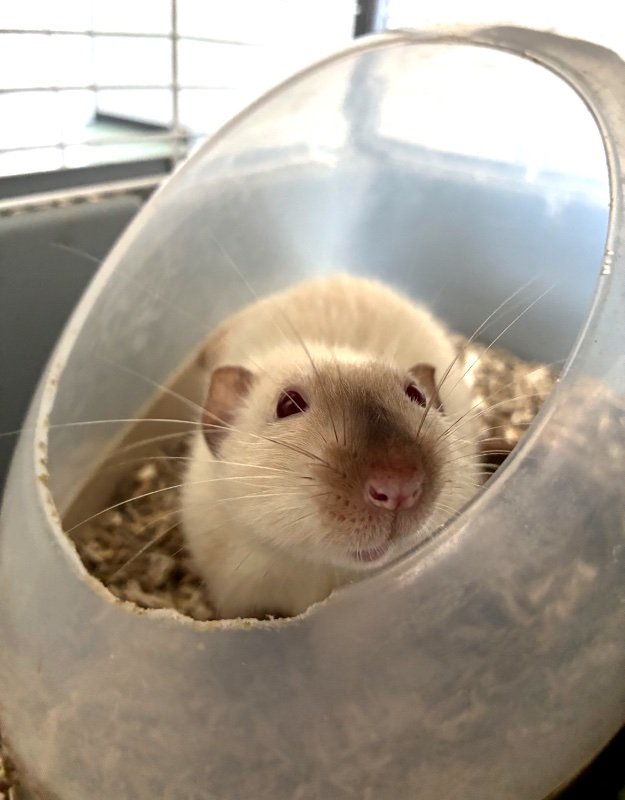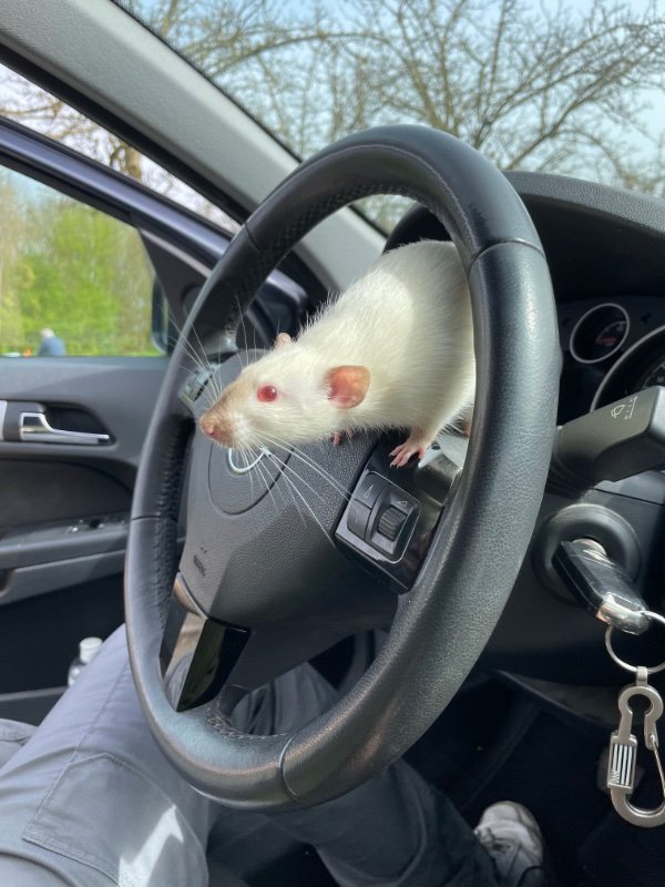 Volterra est un rat qui apprécie sa tranquillité mais n’a aucun soucis avec les caresses et les autres rats, il alterne entre les moments de câlins, taquineries, et coins seuls sans soucis, et n’a jamais mordu. Je l’aime beaucoup mais le mieux pour lui est d’être placé dans un foyer où il pourra avoir des compagnons. Il est curieux et se laisse caresser mais n’aime pas trop être porté, aucun problème de santé (un abcès a été traité il y a 2 mois mais rien de grave).