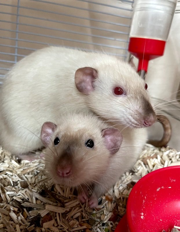 Caractère et sociabilité : sociables avec les autres rats, timide avec l’humain mais accepte les caresses