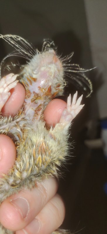 Du coup je viens de nettoyer la cage je l'ai laissé un peu, et puis je viens de voir que la betadine a séché. Nous voyons mieux.