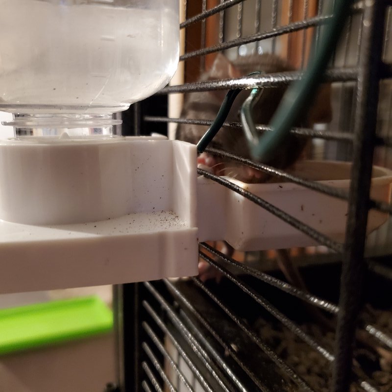 Sinon j'ai lu a plusieurs reprises que le système de biberon n'était pas idéal pour les cervicales des rongeurs, mais comme je n'aime pas les gamelles (car c'est toujours crade quoi qu'on en dise), le distributeur semblait être un bon compromis. Par contre les barreaux font également environ 1 cm, donc ça m'embête un peu de devoir les déformer autant ><