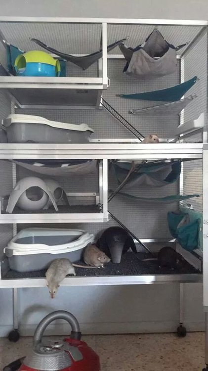 Déjà les rats y sont biens et prennent du plaisir à aller un peu partout dedans. Ensuite elle n'est pas moche et s'integre vachement mieux que la Royale dans mon appart. Niveau ménage c'est génial, je fais les dodos 2 ou 3 fois par semaine, les bacs/étages 1 fois par semaine et le grand bac du fond une fois toutes les 3 -4 semaines. Hier grand lavage complet en 1H, j'ai jamais été aussi rapide. Je peux BIEN la laver, y'a pas de recoins donc pas de trucs sales qui restent coincés, et c'est hyper facile à désinfecter vu que c'est du plexi partout.