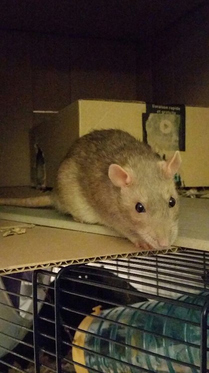 Je suis quand même très fière de lui, après tout il aura vu le véto qu'une fois parce que je voulais montrer son abcès il y a presque pile un an, au final ça n'a servi à rien. Jusqu'à son départ il aura été un rat costaud, jamais un tchoum, jamais la moindre masse pourrie qui semblent accabler ses sœurs.
