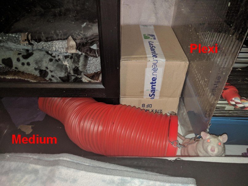 Dans l'appart ou j'habitais précédemment, les rats avaient tout le salon. Puis j'ai adopté une louloute de sauvetage, et pour sa sécurité, j'ai du diviser le salon en 2, pour les sorties, en dépliant un enclos. J'ai multiplié les jeux avec eux pour ne pas que ça les perturbe : c'est passé sans souci !