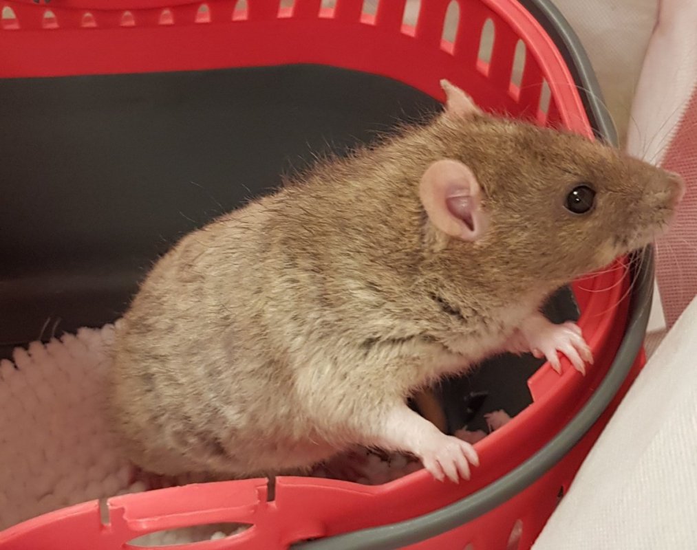 Viserion a du aller voir la véto le weekend dernier car il a eu un saignement de l'oreille qu'on arrivait pas à stopper car il se grattais à chaque fois. La véto à constaté un hématome donc soit il a pris un coup assez violent par un autre rat, soit il a fait une chute, je ne peux pas confirmer je n'ai rien vu ni entendu. Il a donc eu la colerette qu'il était censé garder 5 jours mais la petite terreur a réussi à la retirer dans la nuit. Aujourd'hui il va bien, il a tout de même rendez vous mardi pour un petit contrôle.