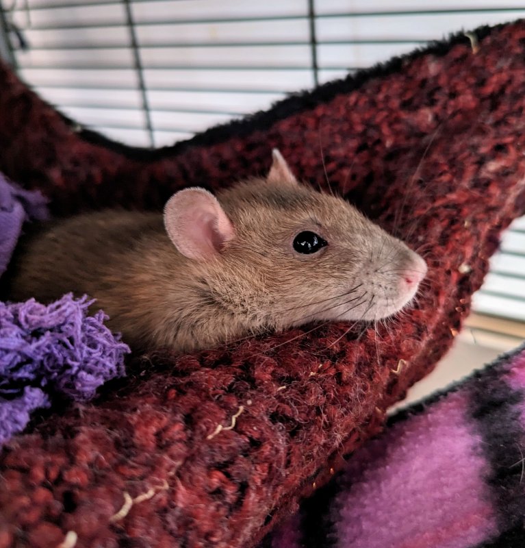 Dernier de la fratrie, mon beau et enquiquinant Pan nous a quitté hier soir suite à une grosse insuffisance rénale qui l'empêchait de se nourrir. Cela faisait quelques mois qu'il souffrait d'une parésie des pattes arrières mais il a gardé la forme jusqu'au bout, malgré ces deux derniers jours où je le sentais fatigué, moralement et physiquement. Quand je relis les posts du début, je me rends bien compte qu'on a vécu beaucoup de choses lui et moi, et il me manque déjà terriblement. C'est que ça fait long 3 ans et 3 mois pour un rat ! Récupéré pendant le premier confinement sur un parking de mcdo en bravant les règles du fameux 1km autorisé, il a fait tourner en bourrique ses deux copains jusqu'à ce qu'il soit castré, puis il a fait sa drama queen jusqu'au départ de Hélios et Endymion... Toujours aussi têtu, il a refusé d'être intégré aux filles et a donc fini sa vie en solo, et ça avait l'air de bien lui convenir. J'en ai connu des départs de rats, mais Pan, mon panpitou, mon pitaoushnok, je vais y repenser longtemps, très longtemps. Merci @Rattlousia pour cette bourrique :joie: