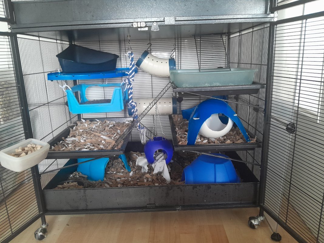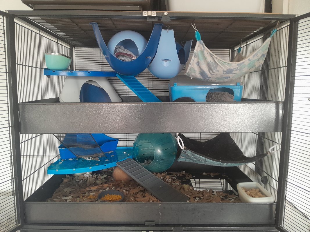 Oui j'adore ta cage e les accessoires, mais encore une fois je te dit que la grille du milieu ça sert à rien 🤐🤐🤐