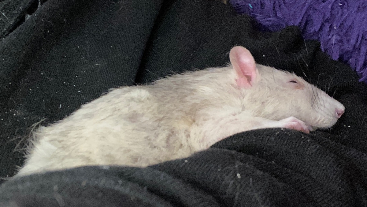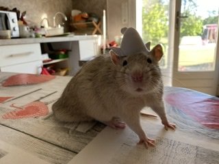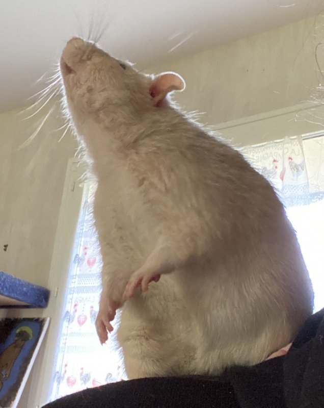 Sa crise d'ado a un peu trainé en longueur, mais vu qu'il a été rejoint par les 2 autres jeunes, je pense que ça l'a entrainé dans son côté un peu "je suis le plus fort, le plus beau, regardez quel beau dominant je ferai !". Le fait est qu'il serait très bon à cette place mais ce n'est pas l'avis du dominant actuel :transpire:. En tous cas, ça reste une patate ce ratou. Il est trop mignon ! Il dort toujours dans le sput' le plus proche de mon bureau, j'ai donc tout loisir de l'admirer dormir sur le dos, rêver, prendre toutes les pauses possibles et inimaginables xD un vrai pacha ! Et si un copain peut lui servir d'oreiller, c'est l'extase !