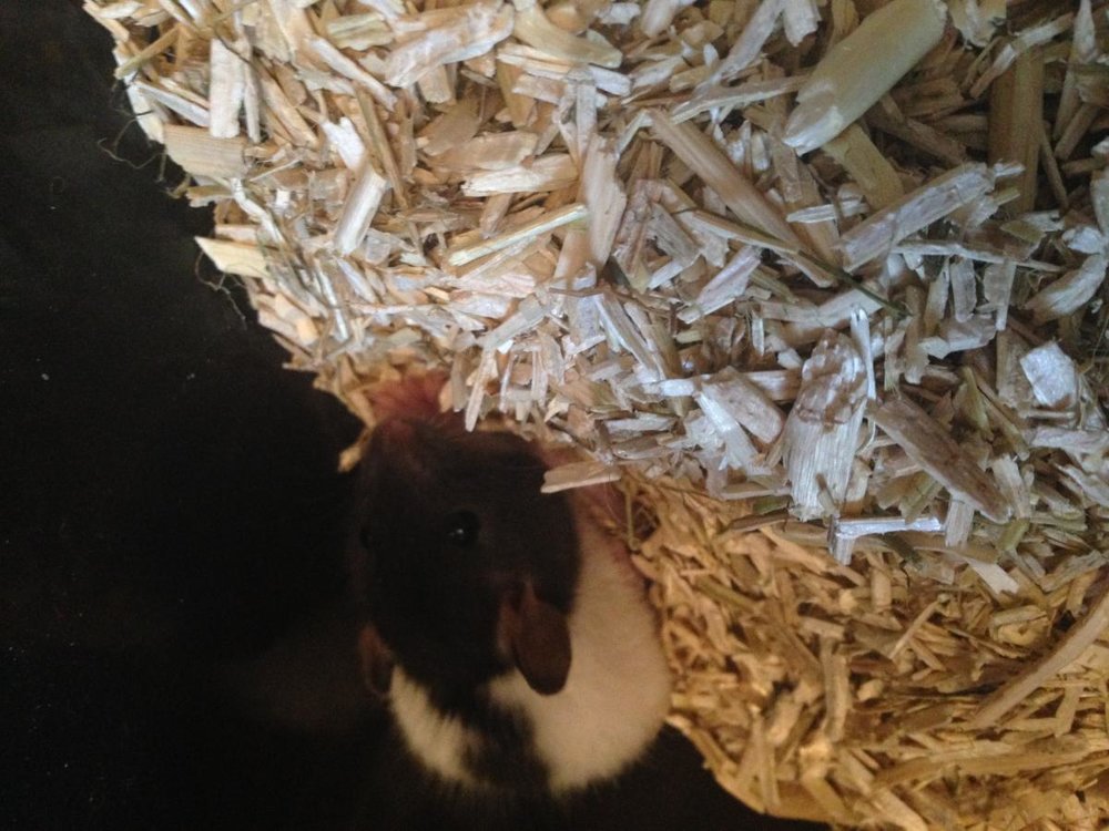 Pour qu'elle s'habitue à moi, j'ai mis dans sa cage un débardeur à moi que j'avais déjà porté avant. J'ai remarqué qu'elle l'avait tirer jusqu'à sa cabane et qu'elle s'était fourrée à l'intérieur entourée de mon débardeur.